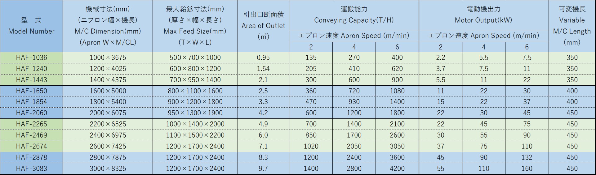 特重型(丈夫な設計) 過酷な条件下でも余裕のある安定した連続運転が可能。 強力型(軽量・小型でかつ高性能) 中小塊原料に適した軽量小型でかつ高性能。 標準型 小塊原料の引出しに適した定量供給用。 |